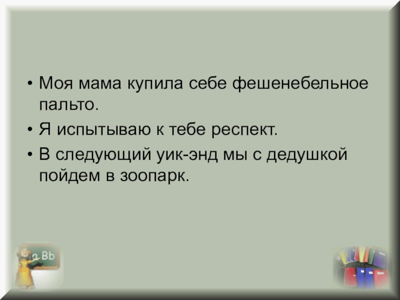 Слайд 13Моя мама купила себе фешенебельное пальто.