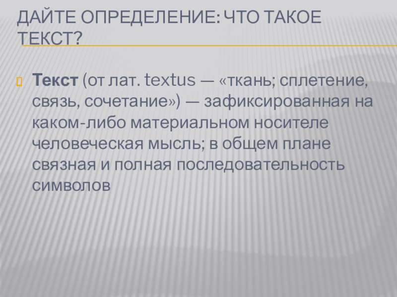 Текст (от лат. textus — «ткань; сплетение, связь,