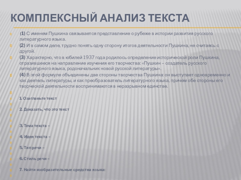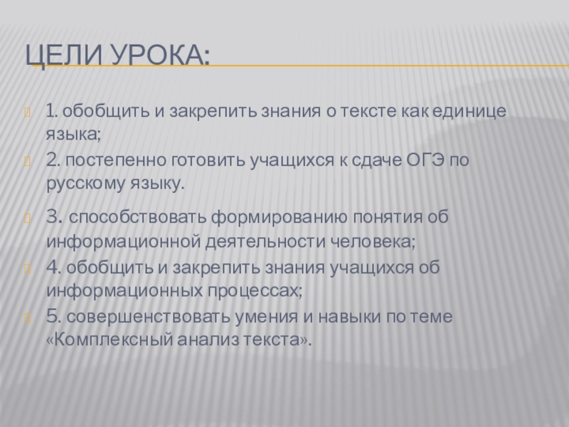 5. совершенствовать умения и навыки по теме «Комплексный анализ текста».