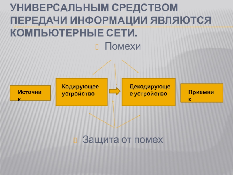 Слайд 13Универсальным средством передачи информации являются компьютерные сети.