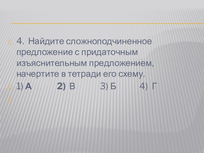 Слайд 194. Найдите сложноподчиненное предложение с придаточным изъяснительным предложением, начертите в тетради