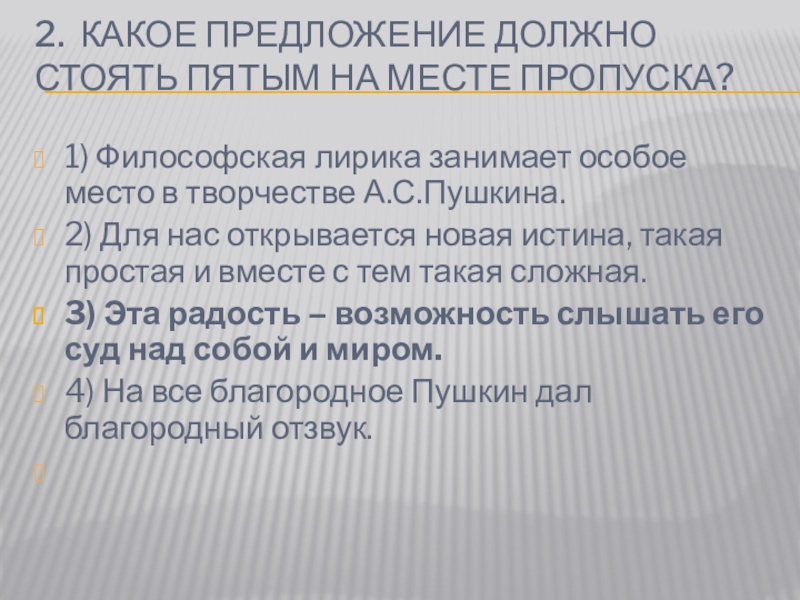 Слайд 172. Какое предложение должно стоять пятым на месте пропуска