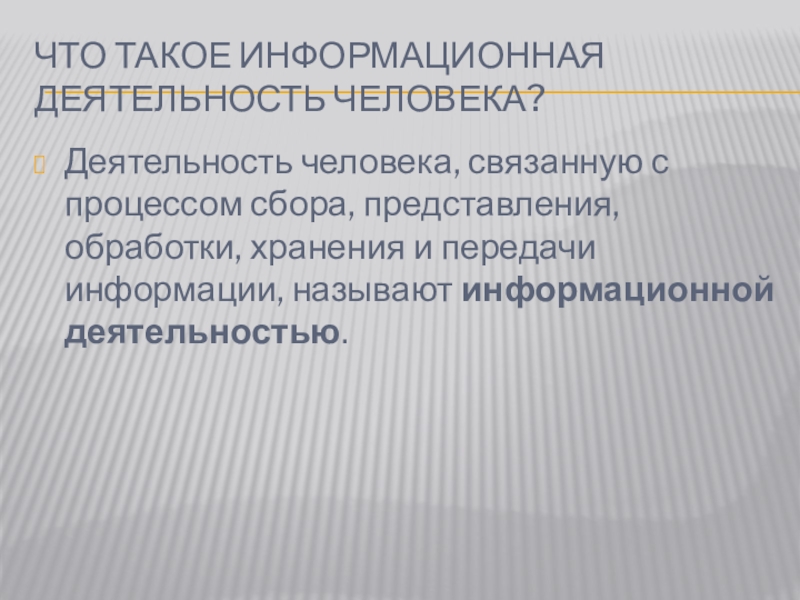 обработки, хранения и передачи информации, называют информационной деятельностью.