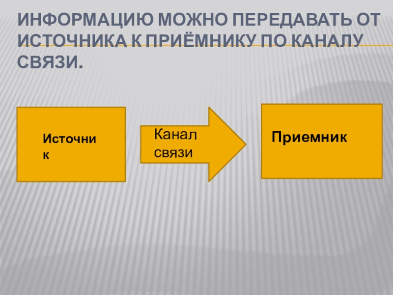 Слайд 12Информацию можно передавать от источника к приёмнику по каналу связи.