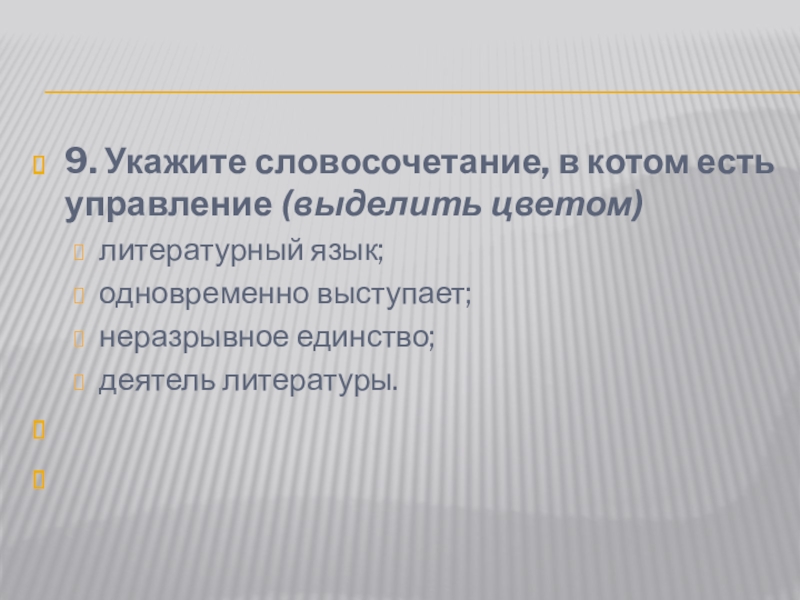 Слайд 229. Укажите словосочетание, в котом есть управление (выделить цветом)