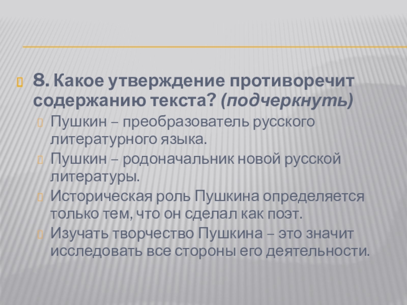 Слайд 218. Какое утверждение противоречит содержанию текста? (подчеркнуть)