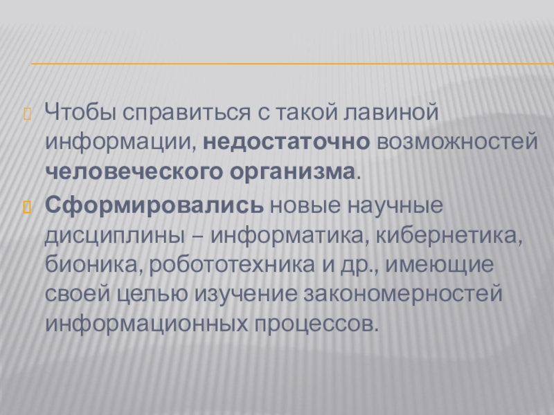 Слайд 3Чтобы справиться с такой лавиной информации, недостаточно возможностей человеческого организма.