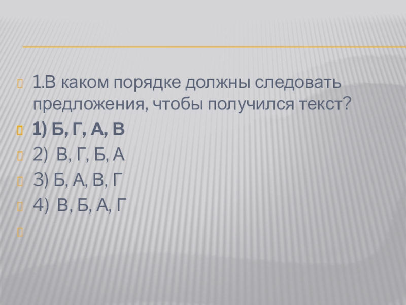 Слайд 161.В каком порядке должны следовать предложения, чтобы получился текст