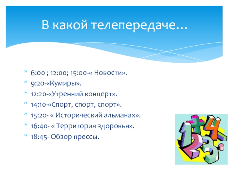 В какой телепередаче…