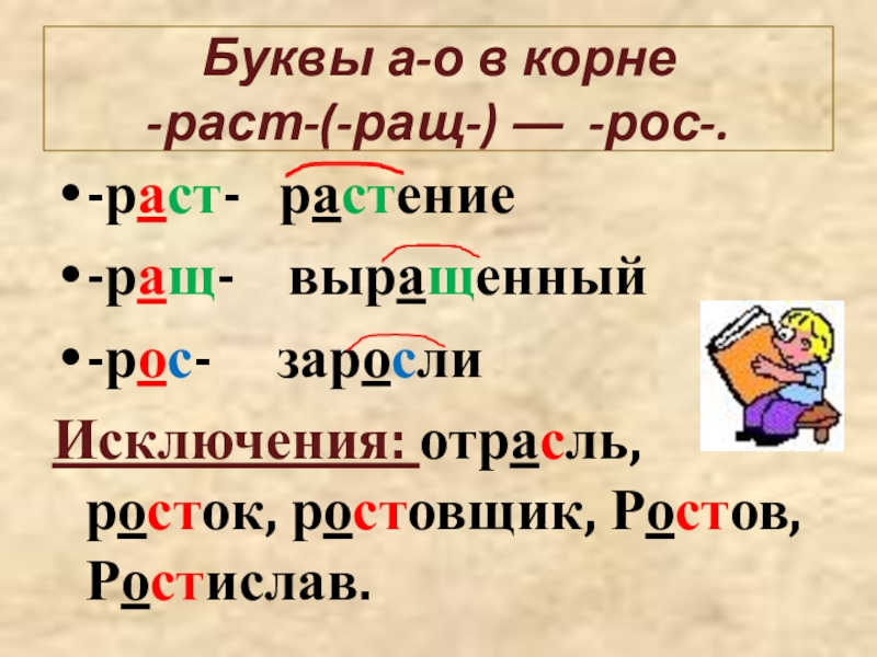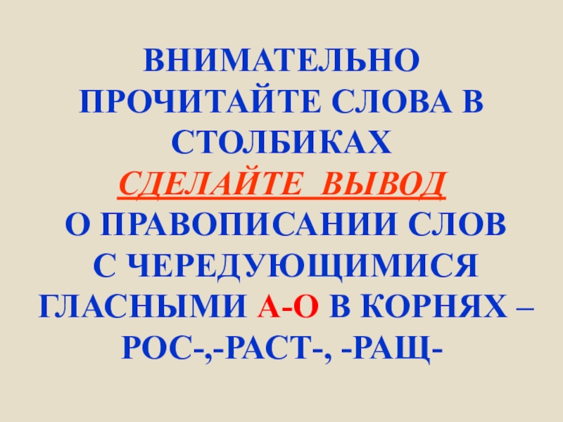 ЧЕРЕДУЮЩИМИСЯ ГЛАСНЫМИ А-О В КОРНЯХ –РОС-,-РАСТ-, -РАЩ-