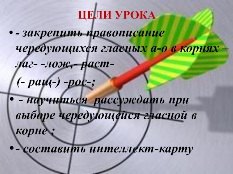 - закрепить правописание чередующихся гласных а-о в корнях –лаг- -лож,-