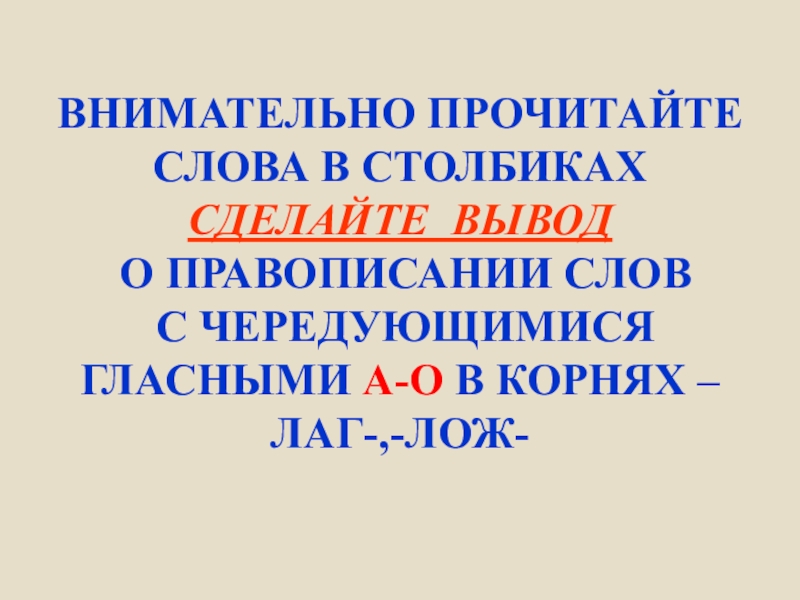 ЧЕРЕДУЮЩИМИСЯ ГЛАСНЫМИ А-О В КОРНЯХ –ЛАГ-,-ЛОЖ-