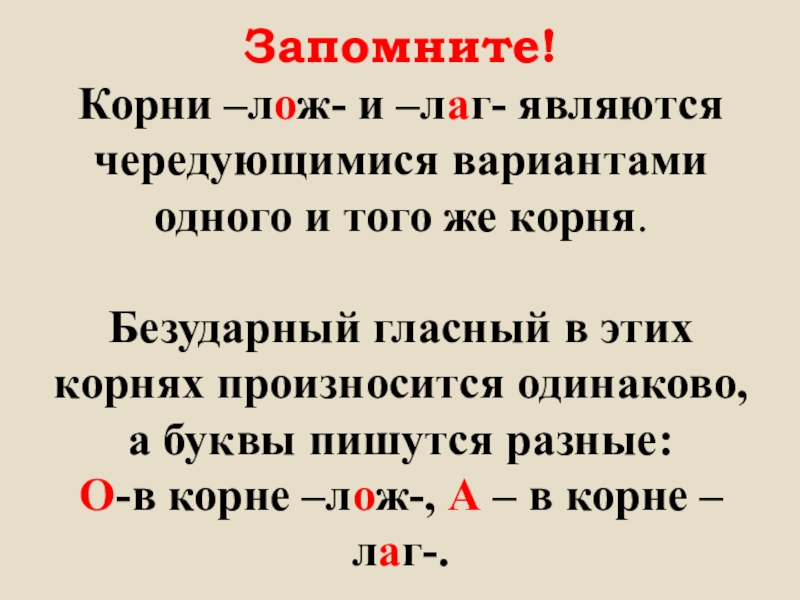 Корни –лож- и –лаг- являются чередующимися вариантами одного и того
