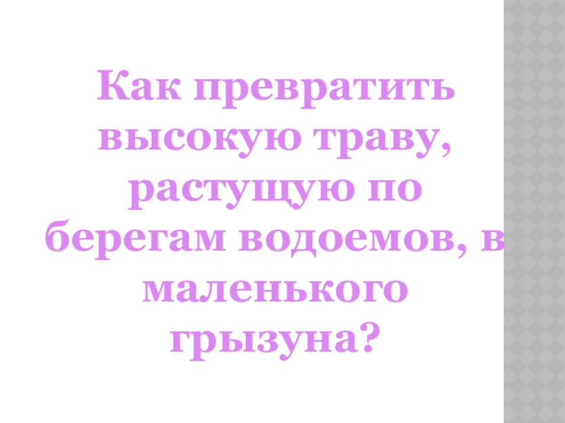 Слайд 30Как превратить высокую траву, растущую по берегам водоемов, в маленького грызуна?