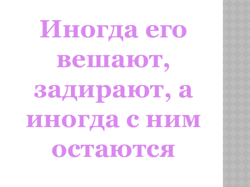 Слайд 28Иногда его вешают, задирают, а иногда с ним остаются