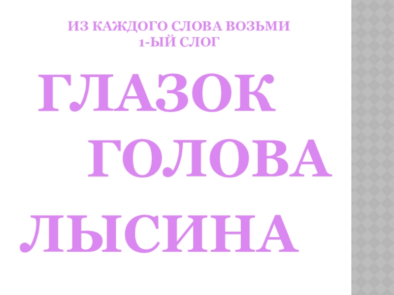 ИЗ КАЖДОГО СЛОВА ВОЗЬМИ 1-ЫЙ СЛОГГЛАЗОКГОЛОВАЛЫСИНА