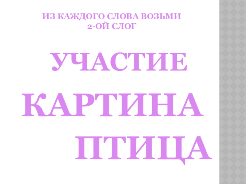 ИЗ КАЖДОГО СЛОВА ВОЗЬМИ 2-ОЙ СЛОГУЧАСТИЕКАРТИНАПТИЦА