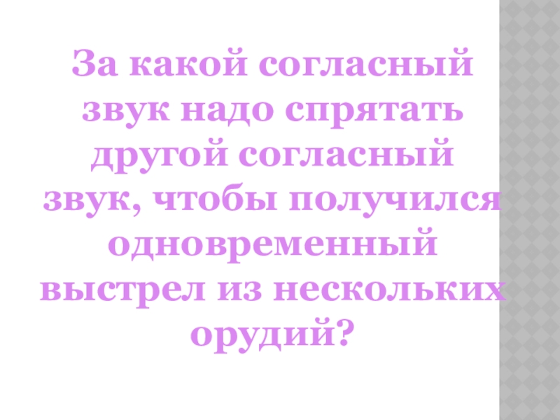 За какой согласный звук надо спрятать другой согласный звук, чтобы получился одновременный выстрел из нескольких орудий?
