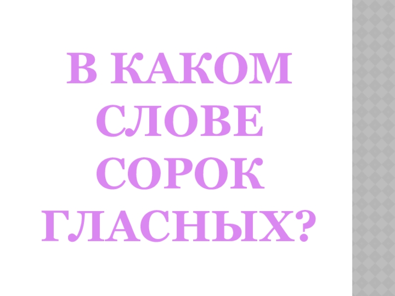 Слайд 26В КАКОМ СЛОВЕ СОРОК ГЛАСНЫХ?