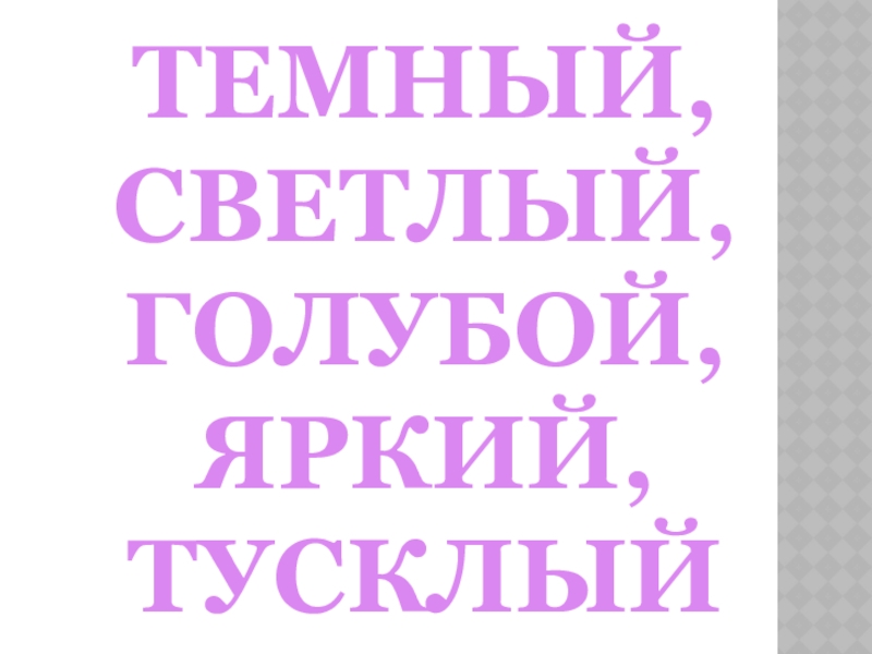 Слайд 18ТЕМНЫЙ, СВЕТЛЫЙ, ГОЛУБОЙ, ЯРКИЙ, ТУСКЛЫЙ