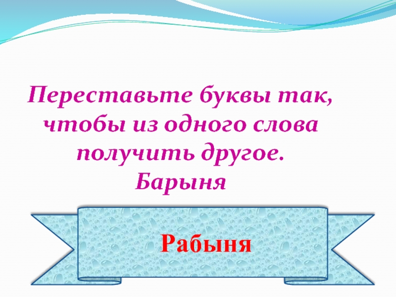 Рабыня Переставьте буквы так, чтобы из одного слова получить другое. Барыня