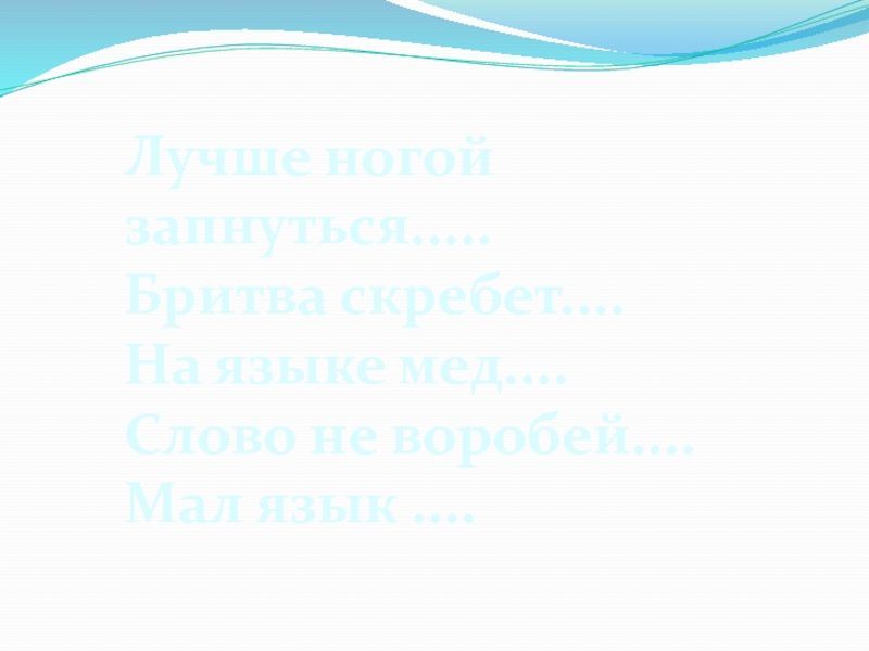 Лучше ногой запнуться.....Бритва скребет....На языке мед....Слово не воробей....Мал язык ....