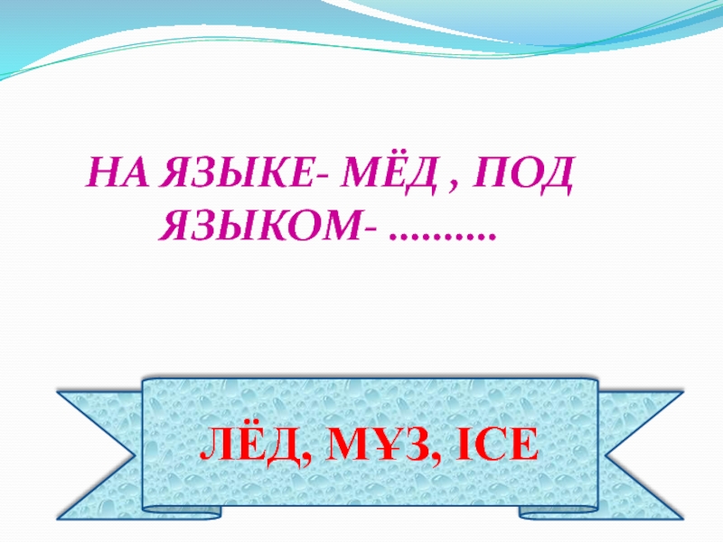 ЛЁД, МҰЗ, ICEНА ЯЗЫКЕ- МЁД , ПОД ЯЗЫКОМ- ……….