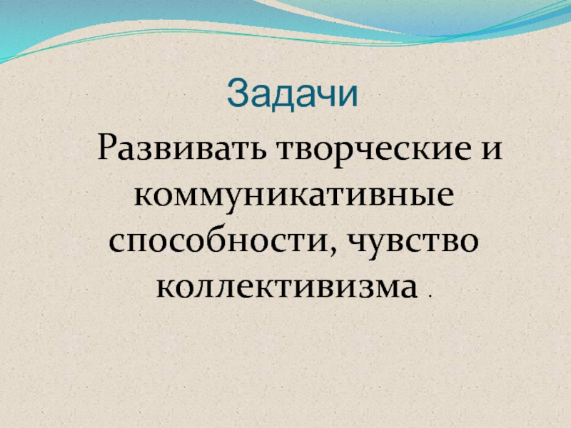 Задачи  Развивать творческие и коммуникативные способности, чувство коллективизма .