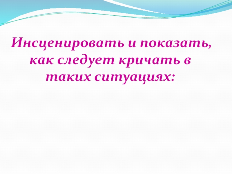 Слайд 25 Инсценировать и показать, как следует кричать в таких ситуациях: