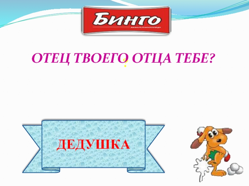 ? ДЕДУШКАОТЕЦ ТВОЕГО ОТЦА ТЕБЕ?