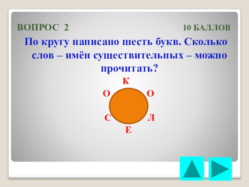 По кругу написано шесть букв. Сколько слов – имён существительных – можно прочитать?
