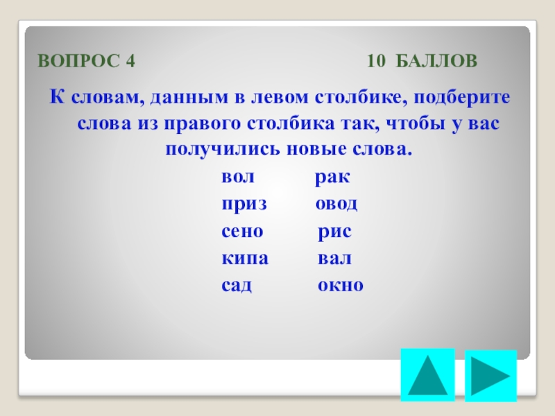 К словам, данным в левом столбике, подберите слова из правого столбика так, чтобы у вас получились новые слова.