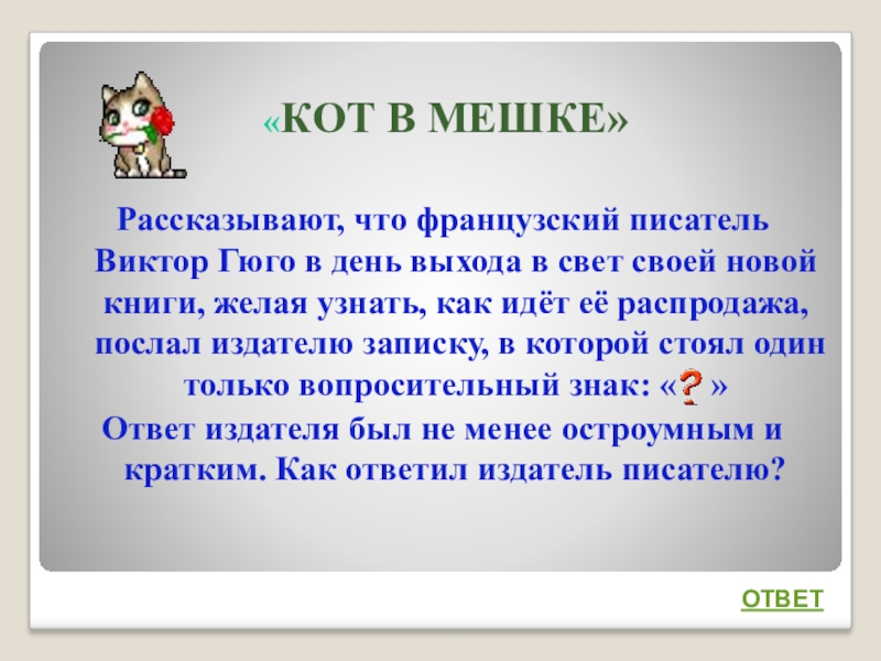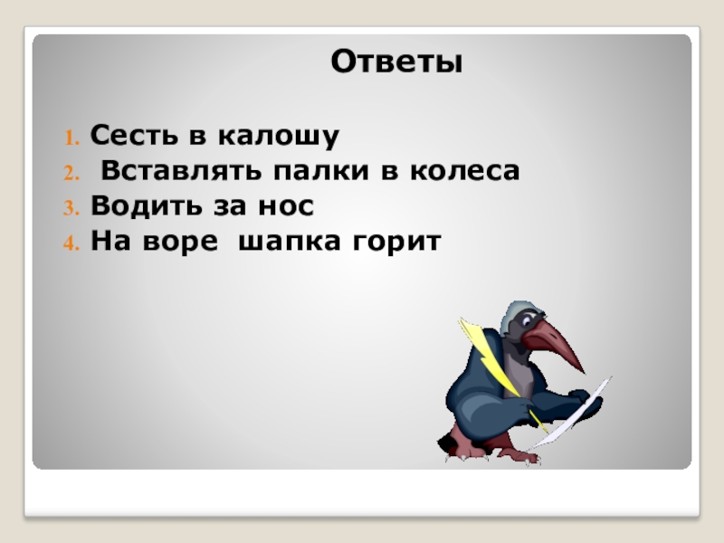 - Эта волшебная буква обладает ещё свойством делать кожаный пояс камнем, а речных рыб – столярным инструментом.