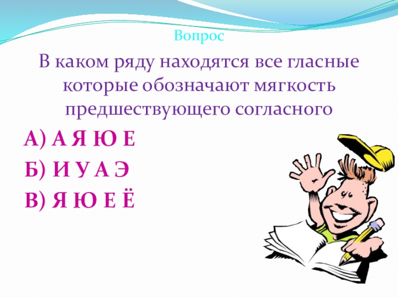 В каком ряду находятся все гласные которые обозначают мягкость предшествующего