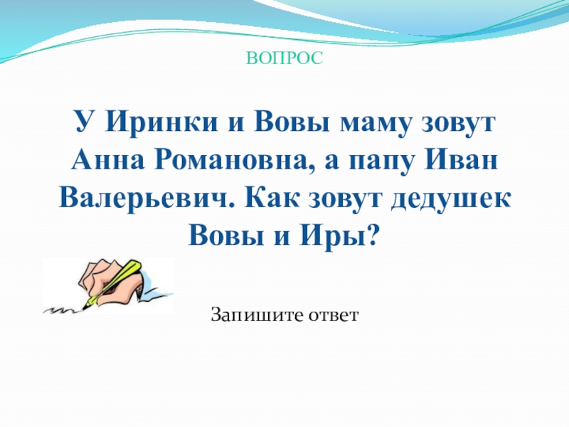 Валерьевич. Как зовут дедушек Вовы и Иры?