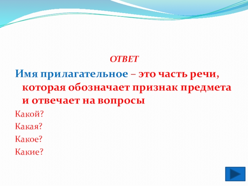 Имя прилагательное – это часть речи, которая обозначает признак предмета и