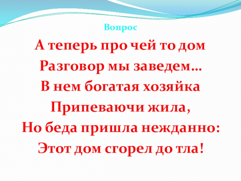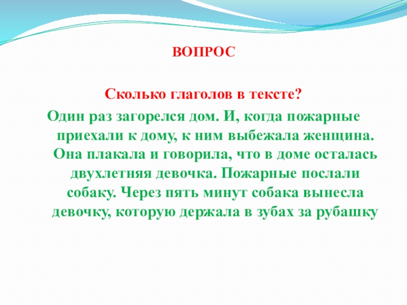 Загорелся, приехали, выбежала, плакала, осталась говорила, послали, вынесла, держала..