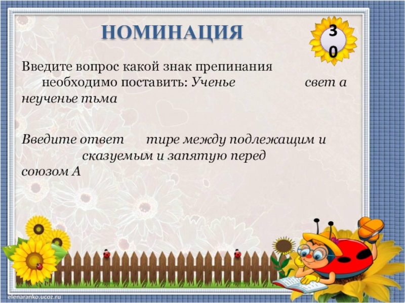 Введите вопрос какой знак препинания необходимо поставить: Ученье свет а неученье тьма