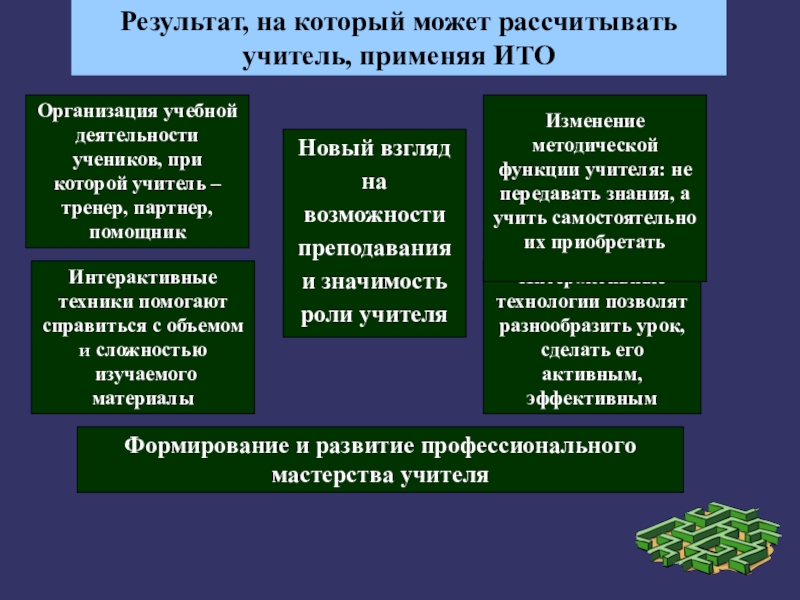 Слайд 13Результат, на который может рассчитывать учитель, применяя ИТО