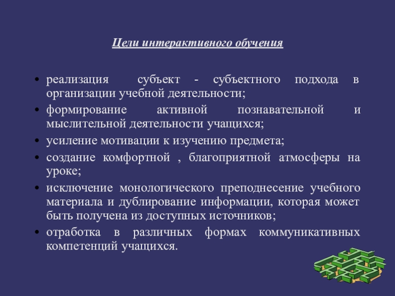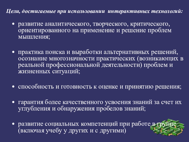 Слайд 26Цели, достигаемые при использовании интерактивных технологий:
