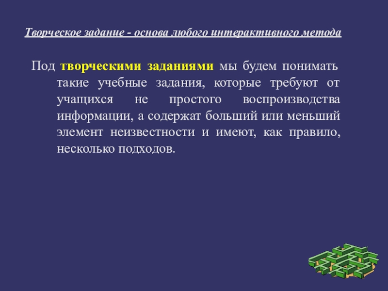 Слайд 18Творческое задание - основа любого интерактивного метода