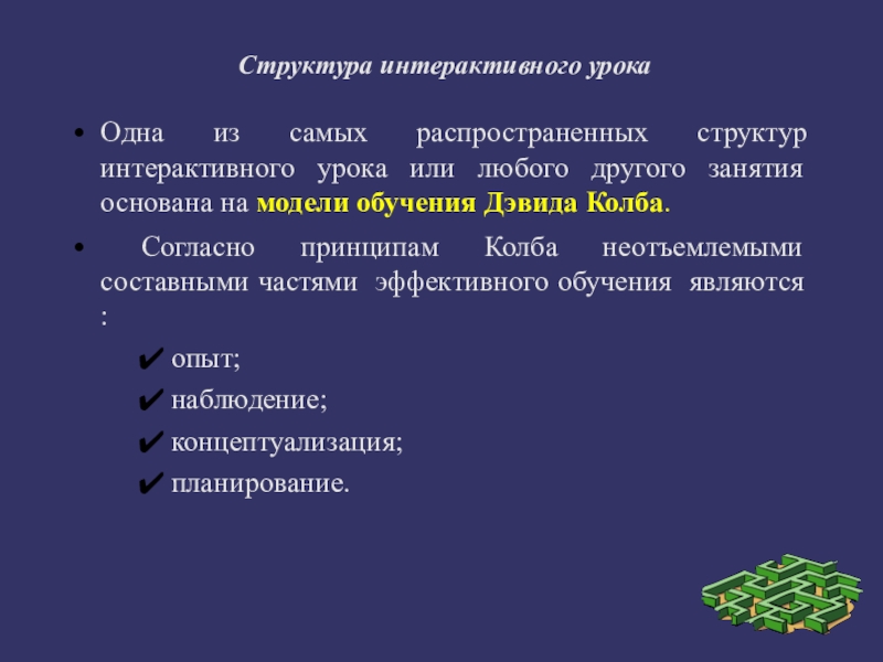 любого другого занятия основана на модели обучения Дэвида Колба.