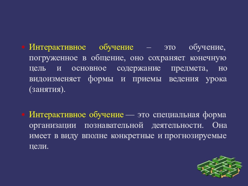 Слайд 7Интерактивное обучение – это обучение, погруженное в общение, оно сохраняет конечную