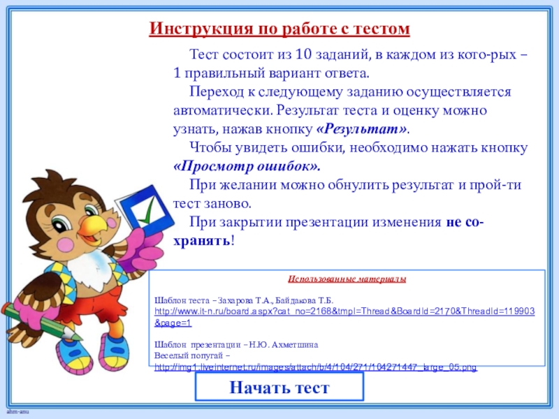 Шаблон теста – Захарова Т.А., Байдакова Т.Б. http://www.it-n.ru/board.aspx?cat_no=2168&tmpl=Thread&BoardId=2170&ThreadId=119903&page=1