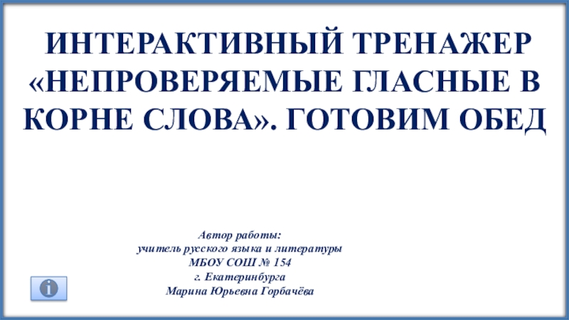 интерактивныЙ тренажер «Непроверяемые гласные в корне слова». ГОТОВИМ ОБЕДАвтор работы: учитель русского языка и литературыМБОУ СОШ
