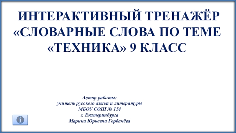 интерактивный тренажёр «Словарные слова по теме «Техника» 9 классАвтор работы: учитель русского языка и литературыМБОУ СОШ