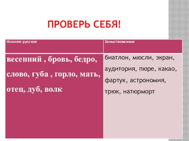 Слайд 6 Исконно русские и заимствованные слова