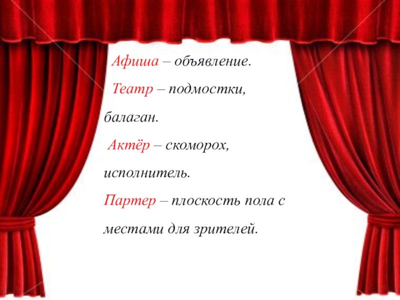 Партер – плоскость пола с местами для зрителей.