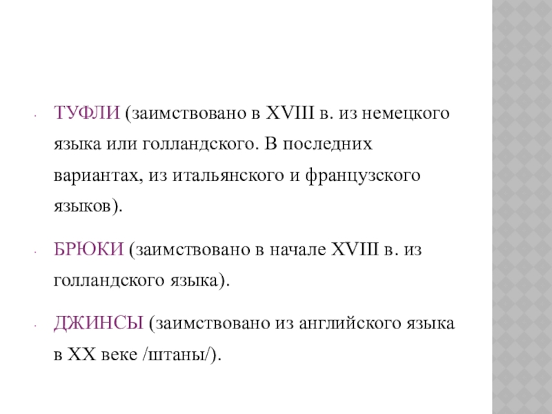 Слайд 16ТУФЛИ (заимствовано в ХVІІІ в. из немецкого языка или голландского. В