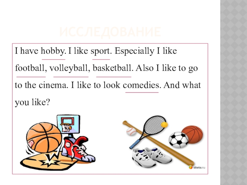 I have hobby. I like sport. Especially I like football,